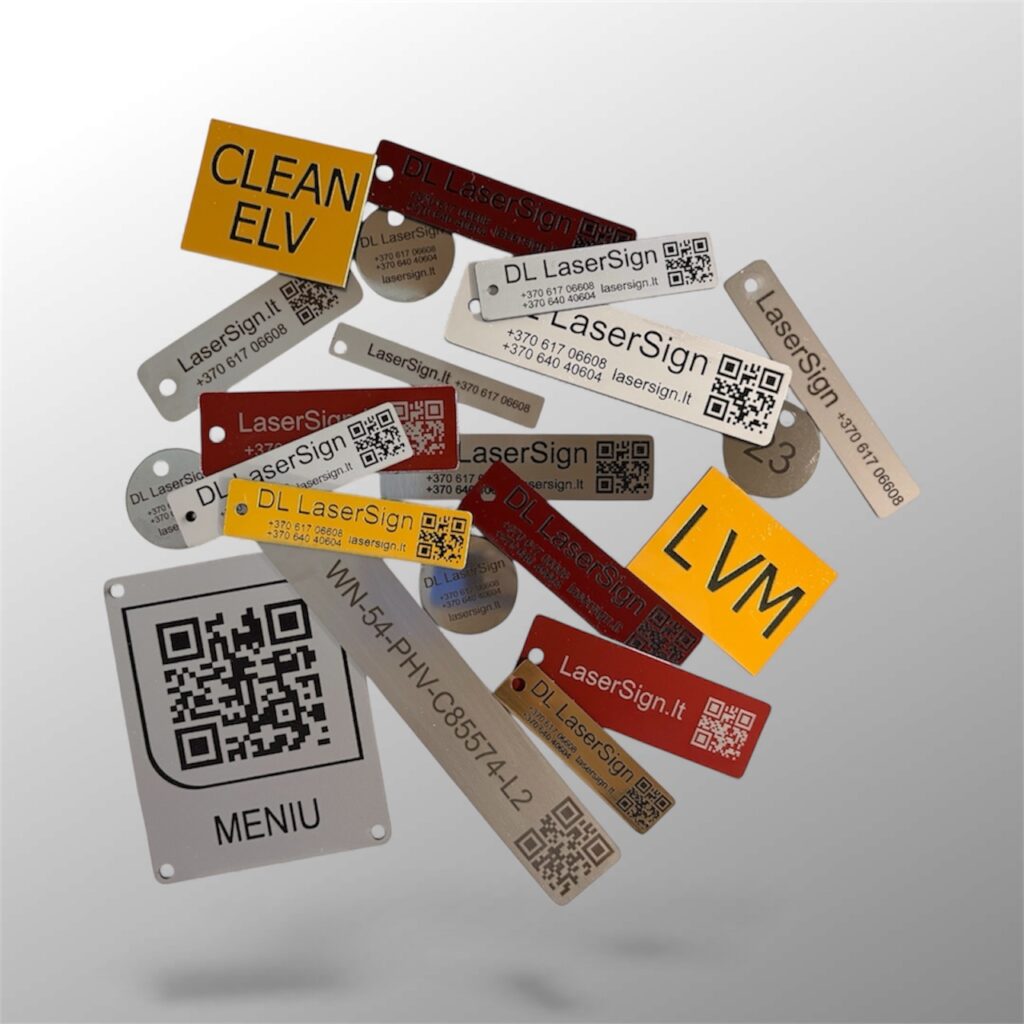 Logotipų, vardų, grafikų, QR kodų, techninių žymėjimų ir individualių dizainų graviravimą